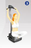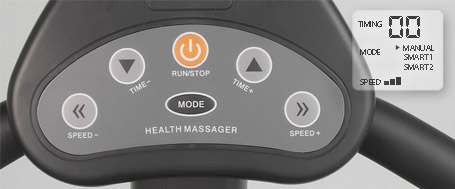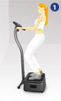 CONTROL PANEL DIRECTIONS RUN/STOP: Upon plugging in the power cord, the LCD displays default settings (Manual Mode with a 10 minute operating time). Press the "RUN/STOP" button to start or stop plate vibration. 2. SPEED: Press the "SPEED +" button to increase the vibration speed one level at a time, up to Level 10 (High), as shown on the LCD Display. To reduce the speed, press the "SPEED -" button. 3. SPEED: Press the "TIME+" or "TIME-" buttons to increase or decrease operating time by 5 minutes at a time, up to 30 minutes. Remaining minutes are displayed, and the device will stop automatically when “0” is reached. 4. MODE: Press the "MODE" button to select mode (Manual, Auto1, Auto2). Choose Auto1for random speed changes, or Auto2 for a smooth build-up and cool-down. The LCD Display willl indicate the current speed, as well as the selected mode. SUGGESTED EXERCISES